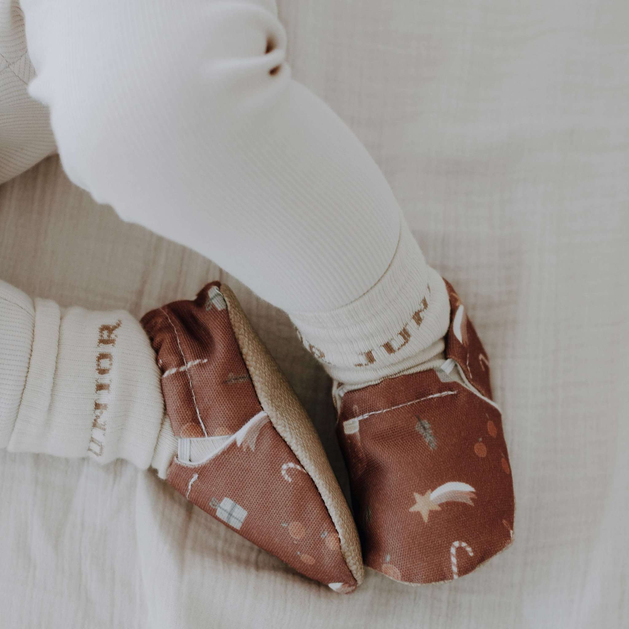 Macht es Euch gemütlich und genießt diese magische Zeit mit unseren Cosy Christmas Schühchen!. Der Stoff ist samtweich und die rutschhemmende Sohle hilft Dir beim Krabbeln und Laufen (lernen). Die Schuhe passen sich optimal Deinen Füßen an und fördern Deine gesunde Entwicklung. Es ist fast wie barfußlaufen nur mit dem Schutz aus samtweichen und recycelten Materialien.