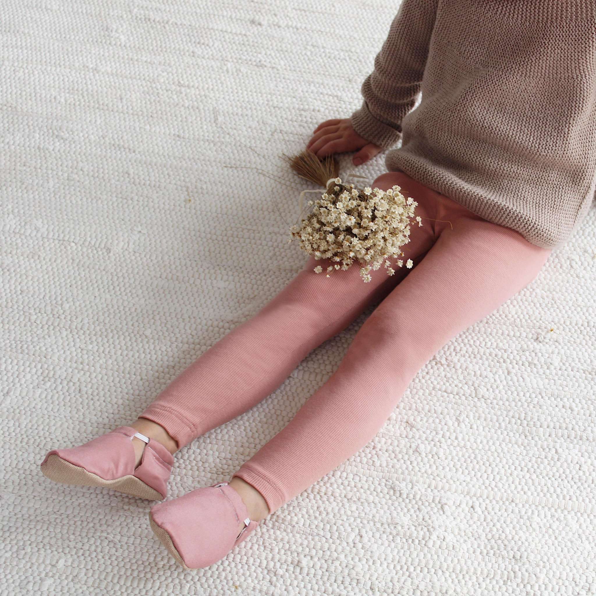 Kuschelig weiche Leggings aus GOTS-zertifizierter Bio-Baumwolle mit einer feinen Rippenstruktur in unserer exklusiven Farbe Dusty Rose.