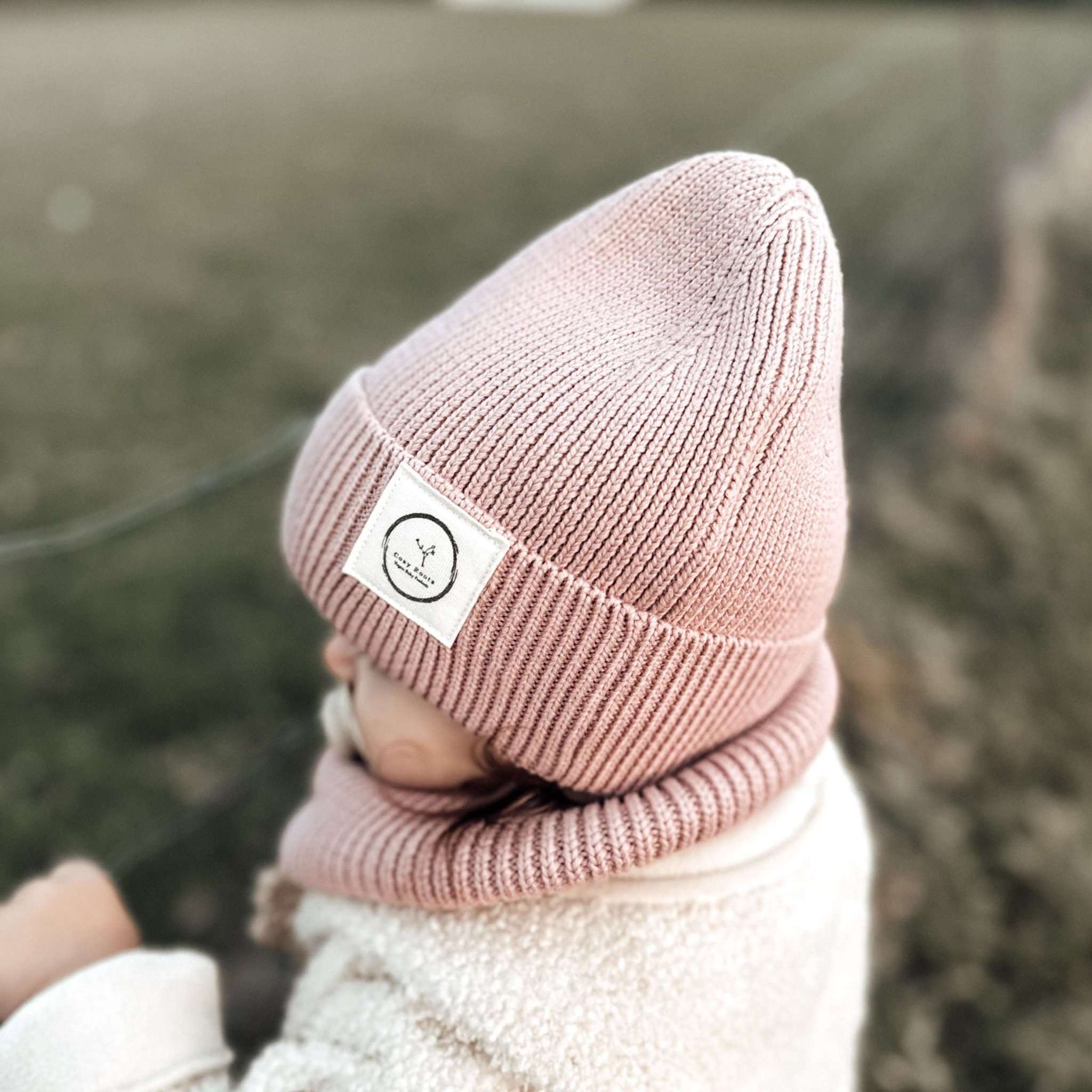 Kuschelig weiche Strick-Beanie aus GOTS-zertifizierter Bio-Baumwolle in unserer exklusiven Farbe Dusty Rose.