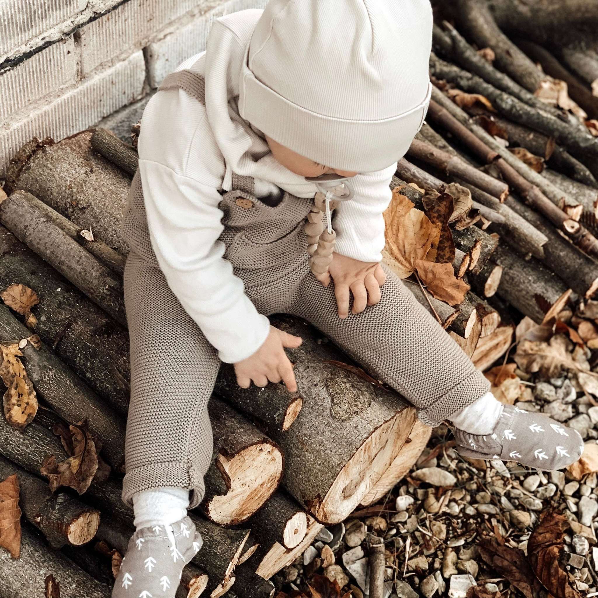Kuschelig weiche Strick-Latzhose aus GOTS-zertifizierter Bio-Baumwolle in unserer exklusiven Farbe Caramel.