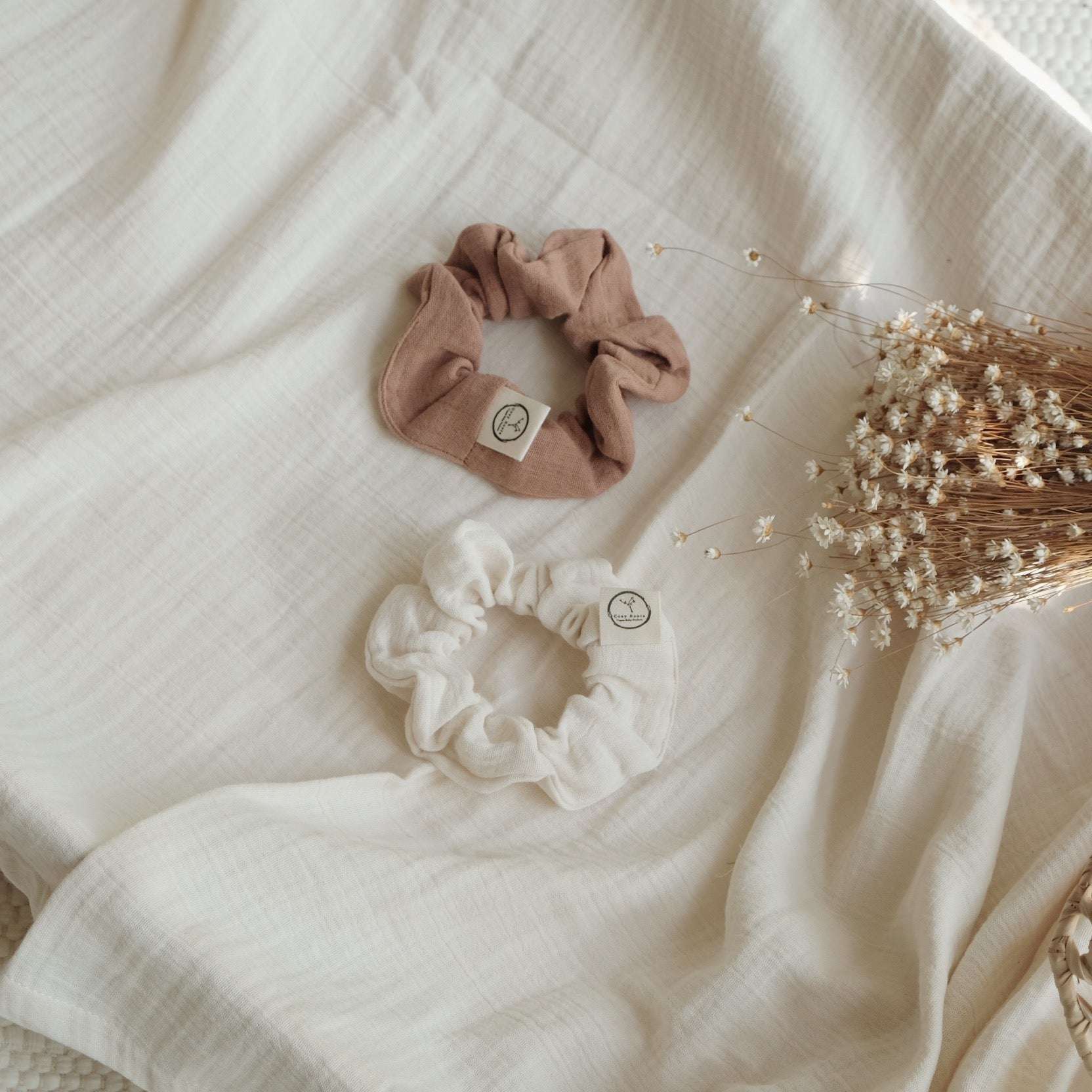 Organic Muslin Scrunchies - Walnut/Sand - SALE