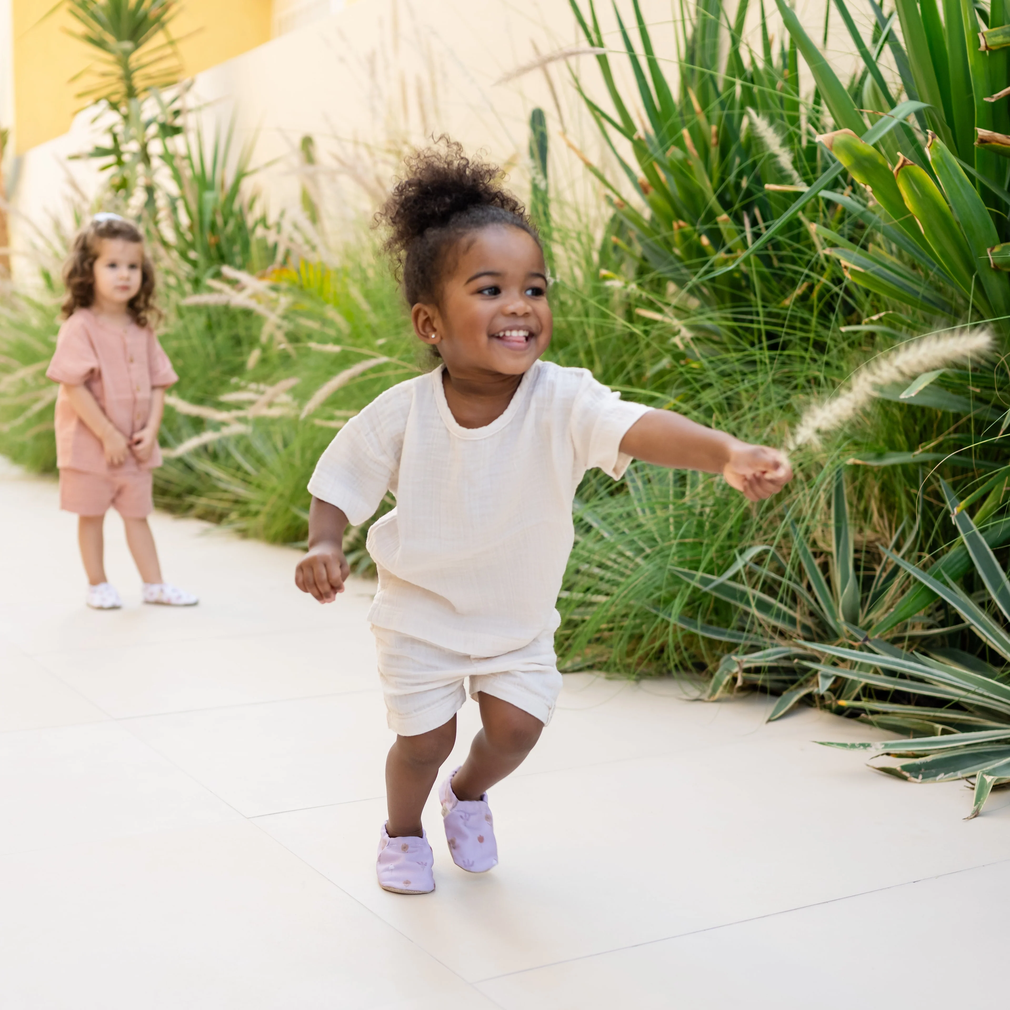 Unser Organic Muslin T-Shirt in der wunderschönen Farbe Sand ist ein leichtes Essential für warme Tage. Gefertigt aus besonders weichem GOTS-zertifiziertem Bio-Musselin, fühlt sich das Shirt angenehm luftig auf der Haut an und bietet maximalen Komfort für aktive Kids.