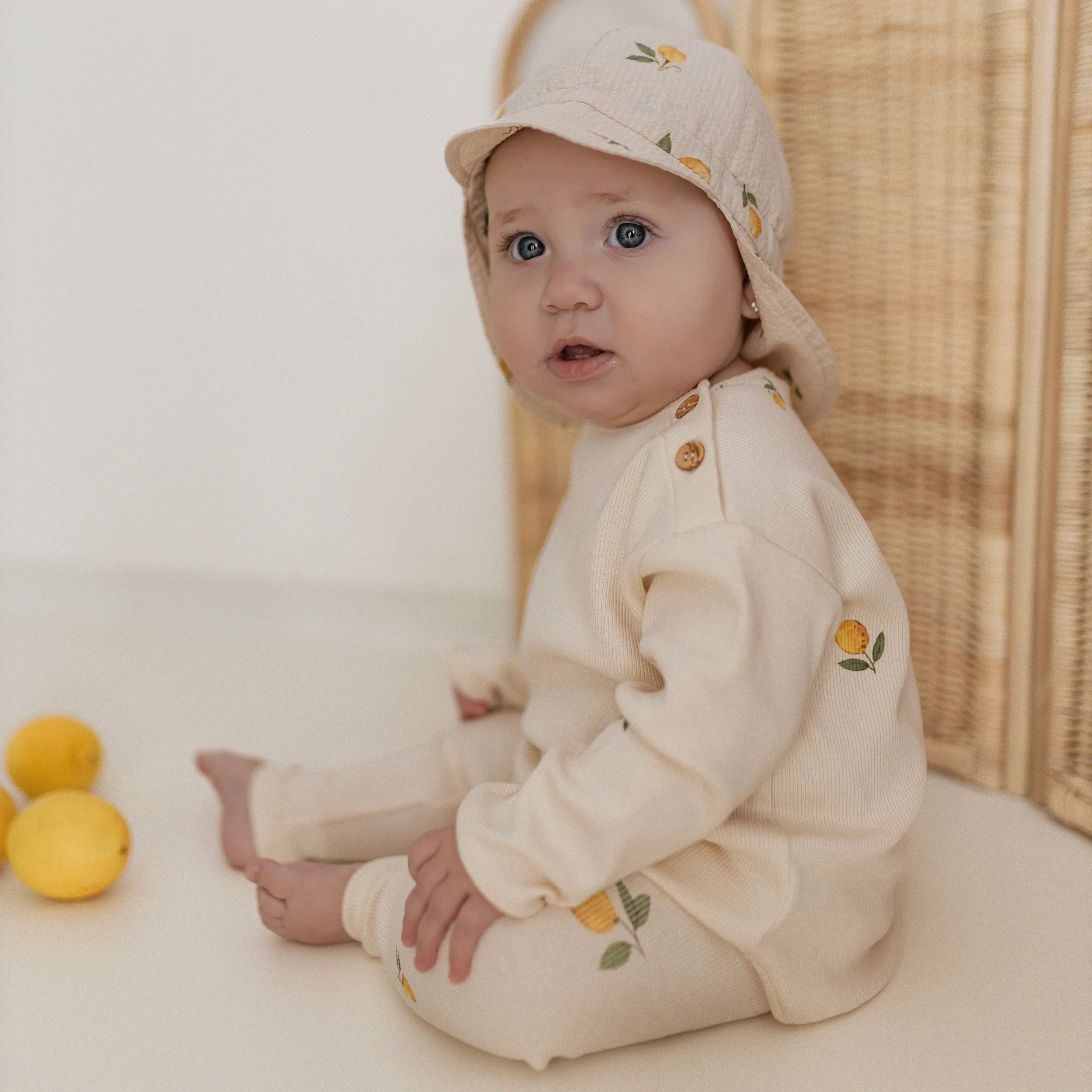 Kuschelig weiches Sweatshirt aus GOTS-zertifizierter Bio-Baumwolle mit einer feinen Rippenstruktur in unserem exklusiven Design Pure Lemon.