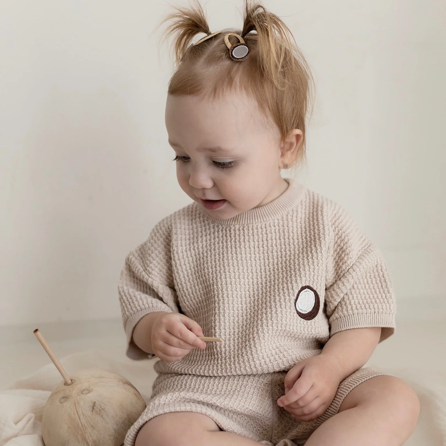 Unser Coconut Summer Knit Shirt in der Farbe Sand ist aus einem feinen, dünnen Strick gefertigt – ideal für warme Tage und empfindliche Kinderhaut. Die hochwertige Struktur aus 100% GOTS-zertifizierter Bio-Baumwolle sorgt für ein angenehm luftiges Tragegefühl und natürliche Atmungsaktivität.