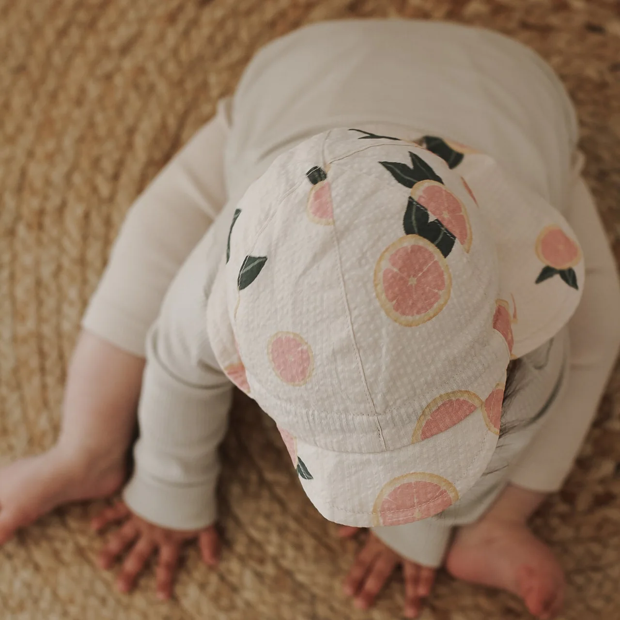 Wunderschöner & nachhaltiger Sonnenhut aus GOTS-zertifizierter Bio-Baumwolle in unserem exklusiven Design Little Grapefruit.