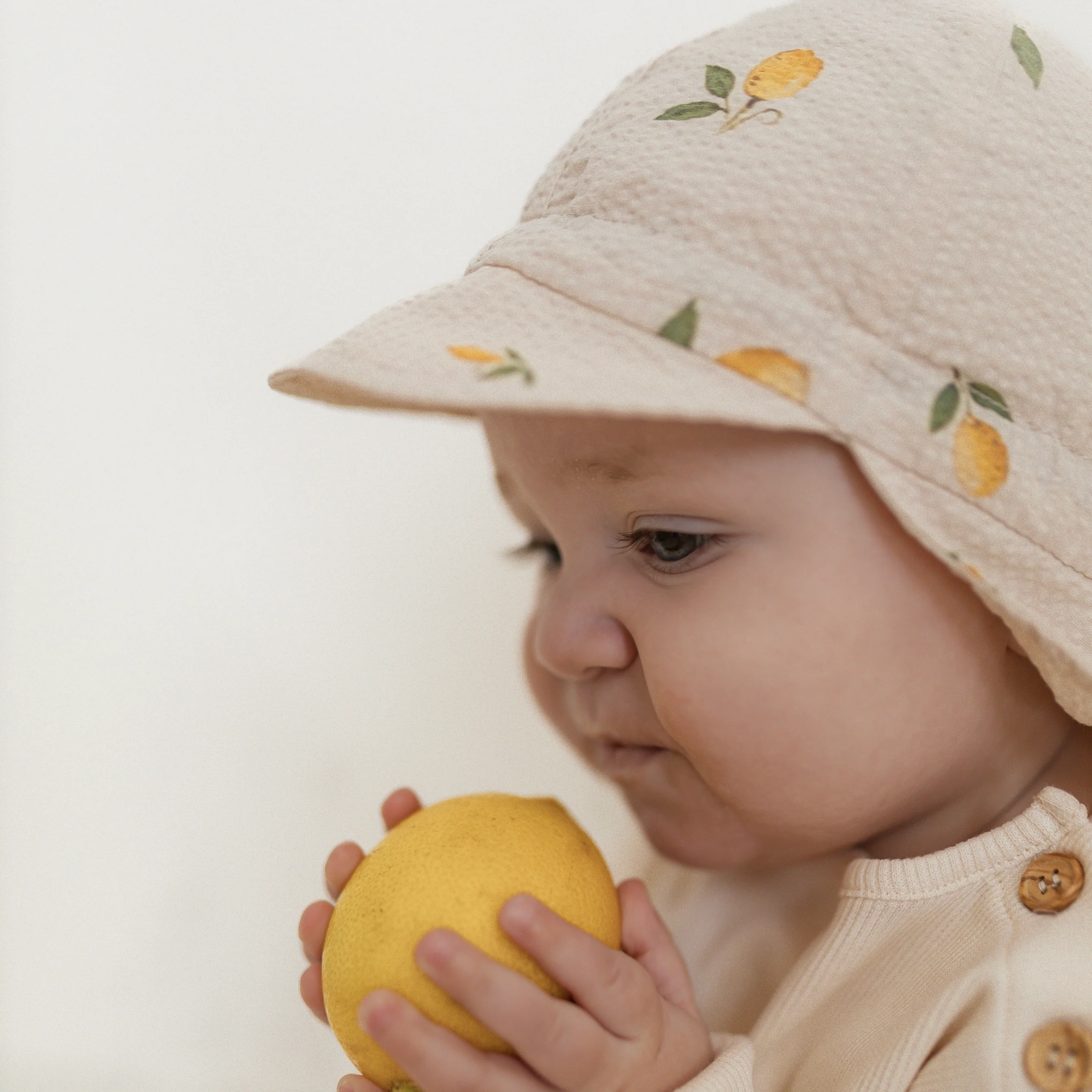 Wunderschöner & nachhaltiger Sonnenhut aus GOTS-zertifizierter Bio-Baumwolle in unserem exklusiven Design Pure Lemon.