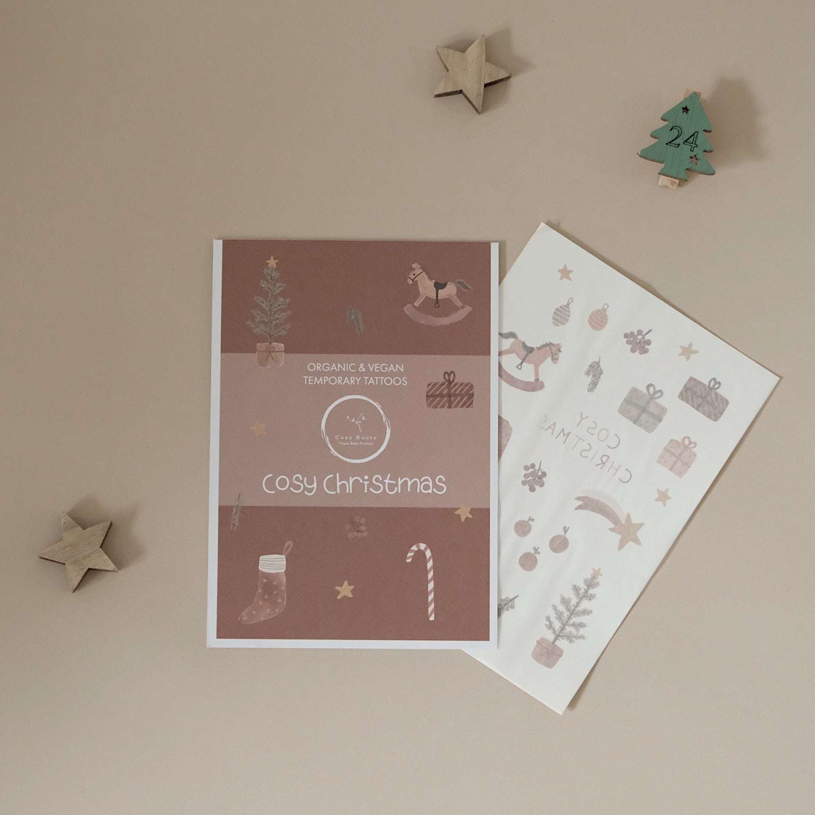 Wunderschöne, von Hand illustrierte Tattoos in unserem exklusiven Design Coysters Christmas. Unsere Tattoos sind vegan, natürlich plastikfrei verpackt und lassen sich mit Babyöl ganz leicht wieder von der Haut entfernen.
