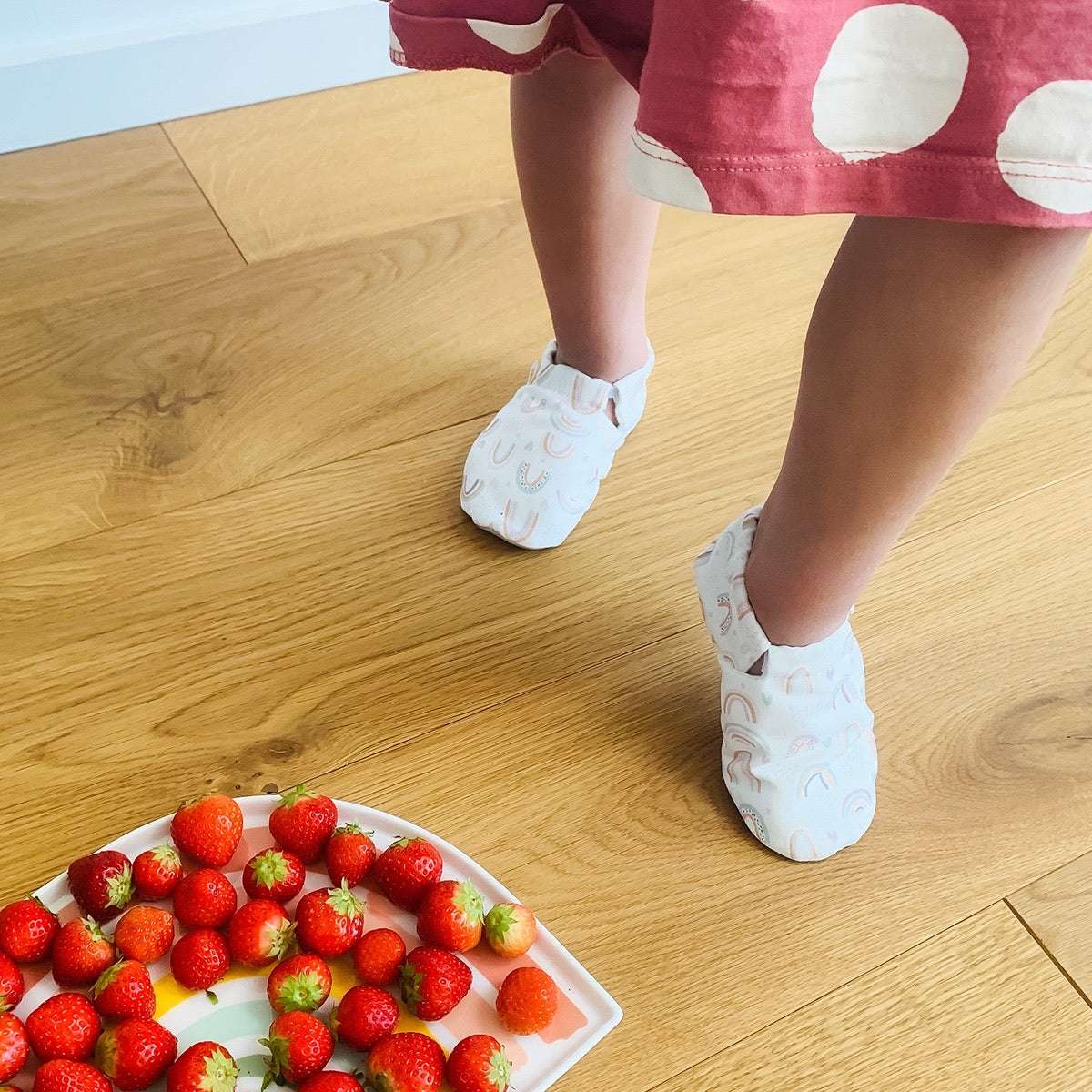 Bitte nicht auf rauen Böden (Asphalt, Kieswege etc.) krabbeln, damit Ihr lange etwas von unseren weichen Schuhen habt!